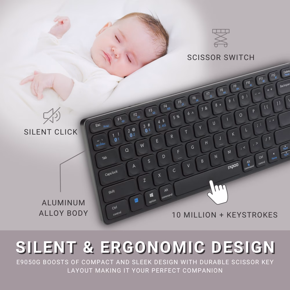 Be the first to review “KEYBOARD RAPOO WIRELESS MULTI MODE E9050G DARK GRAY / PINK/WHITE” Cancel reply