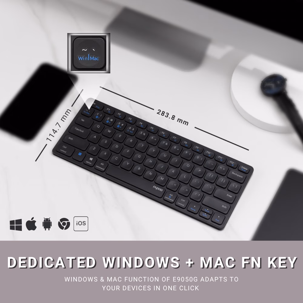 KEYBOARD RAPOO WIRELESS MULTI MODE E9050G DARK GRAY / PINK/WHITE