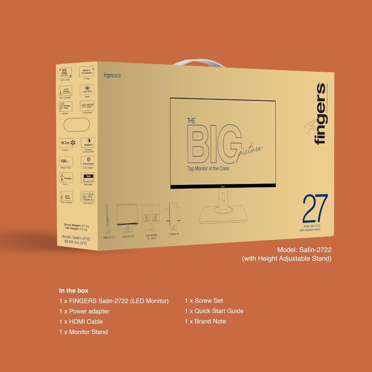 MONITOR FINGERS SATIN -2722 27″+ ADJUSTABLE STAND