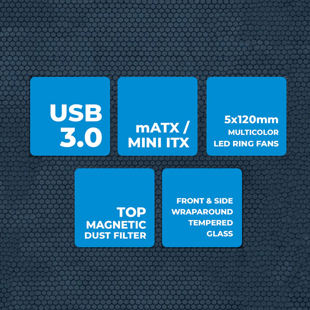 - 5 x 120mm Multicolor LED Ring Fans